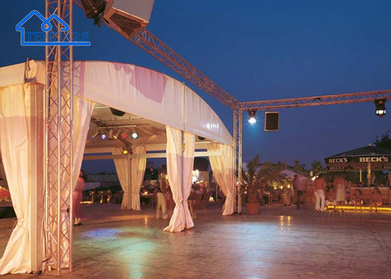 Устойчивость к погоде: тканевые покрытия палатки Arcum Aluminum обычно изготавливаются из высококачественных материалов ПВХ или полиэстера, известных своей превосходной устойчивостью к погодным условиям.ветер, ультрафиолетовых лучей и других наружных элементов, обеспечивающих безопасную и комфортную среду для участников мероприятия.