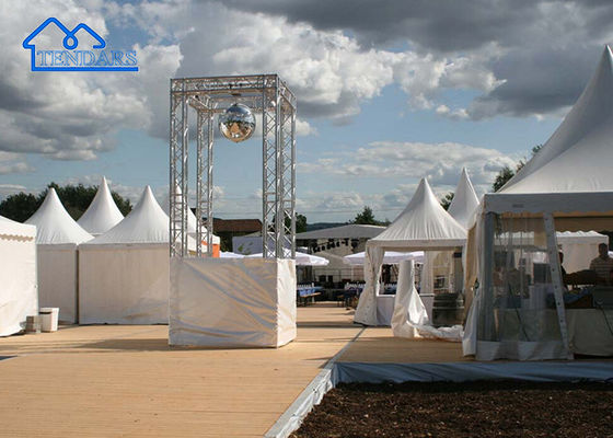 Прочный материал крыши: навес алюминиевой пагоды обычно изготавливается из прочных и устойчивых к погодным условиям материалов, таких как полиэстер или винил, покрытые ПВХ. Эти материалы обеспечивают защиту от солнечного света, дождя,и ветер, обеспечивая комфорт и сухость участников мероприятия.